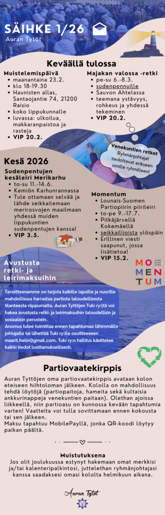 Pääset ilmoittautumaan mukaan Auran Tyttöjen toimintaan seuraavan linkin kautta: https://aurantytot.fi/lippukunta/